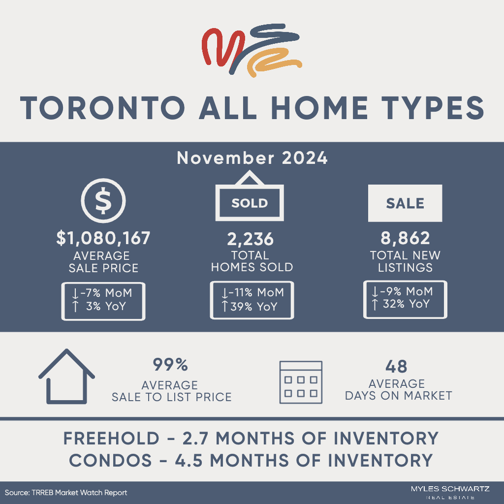 *This is an update for Toronto as a whole and things can look very different between different areas and home types. If you would like to dig deeper into the numbers that matter more to you, please book a call with me here.