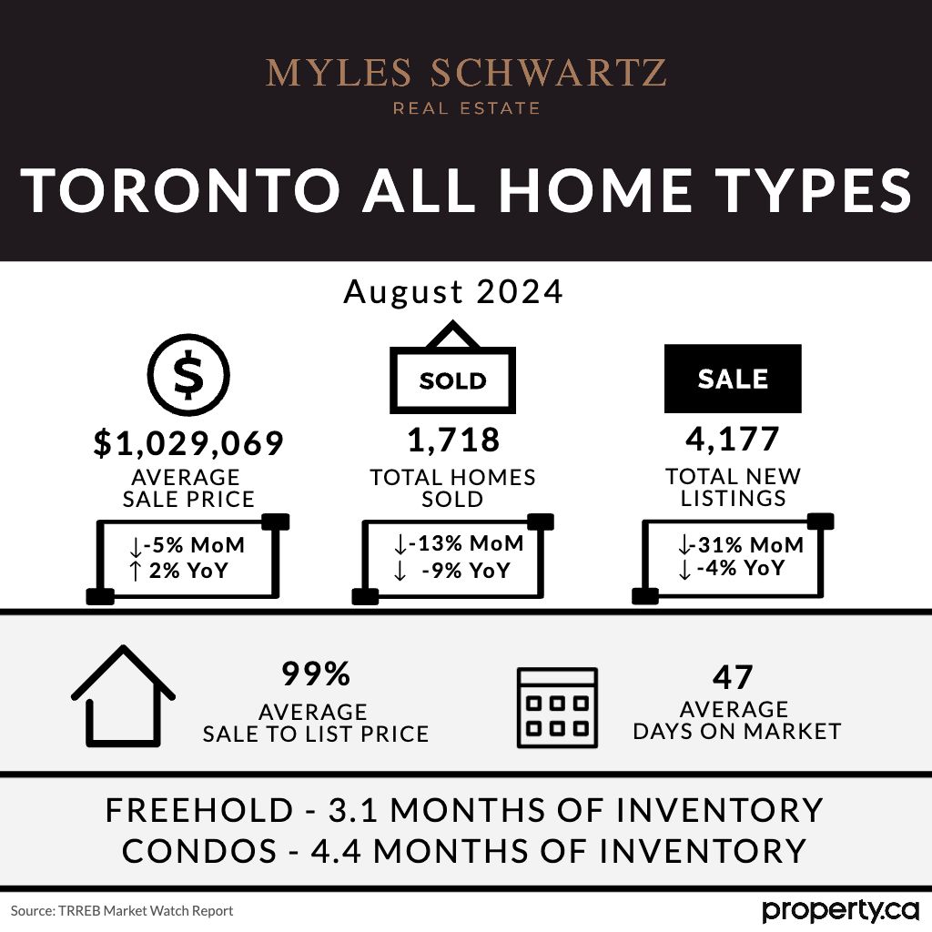 Looking at numbers after the first week of September, Toronto Freehold homes are in a Balance Market at 4.1 Months Of Inventory and Toronto Condos are up in a Buyers Market at 6.3 Months Of Inventory.
